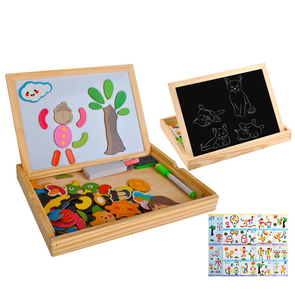 La lavagna magnetica 2 in 1 con il puzzle magnetico e la lavagnetta per disegnare è un gioco multifunzionale adatto ad una larga fascia di età infantile.