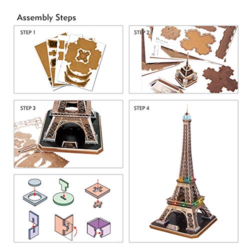 Puzzle 3D Torre Eiffel di Parigi, Edizione Notturna con luci flash a 7 colori. Cartone espanso EPS di alta qualità e resistente. La stampa a colori realistica ravviva i dettagli. Facile da montare, senza colla o strumenti necessari. Consigliato per 8+ anni. Un regalo perfetto per compleanno / Natale / Capodanno. Regalo e souvenir ideali per amici e bambini. Misure assemblate: 44 x 58.6 x 22 cm. Composto da 82 pezzi; include luce a led (batterie non incluse) [amz_corss_sell asin=”B06WLKDKWT”]