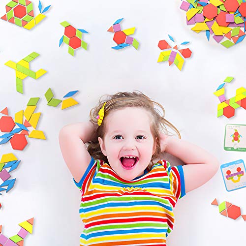 CREATIVO E DIVERTENTE: il set di blocchi di modello in legno è un modo creativo e divertente per i tuoi bambini di esplorare e analizzare forme geometriche, dimensioni e relazioni spaziali. Con 155 pezzi di blocchi di colore diverso, si possono creare forme arbitrarie, animali, persone, fiori, navi, alberi e motivi più geometrici.